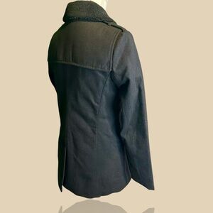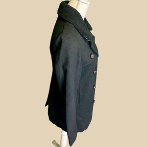 NWT Members Only Fur Collar Black Wool-Blend Double-Breasted Pea Coat Sz Small