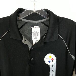 NWT Men Size Large NFL Apparel Black Pittsburgh Steelers Three-Button Polo Shirt