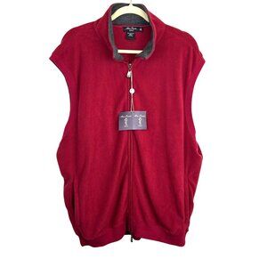NWT Men XL Alan Flusser Golf Red Maroon Sleeveless Zip Up Vest Outerwear Pockets