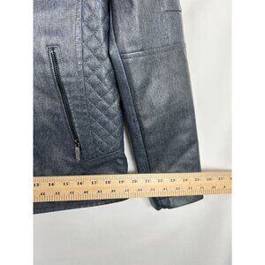 This men's denim jacket combines classic style and functionality with its quilted details, multiple zipper pockets, and cozy faux fur lining. The medium fit and durable construction make it a practical choice for cooler weather.