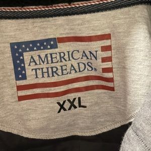 NWT American Threads Men's Sz XXL Gray Checkered 1/4 Zip Up Sweater Jacket Fur Zipper: 10 1/2”, inside the collar is black fur for added warmth.