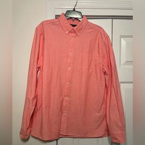 This button down is new with tags by Banana Republic. It is the standard untucked fit in size large and 100% organic cotton, has a front pocket and extra buttons.