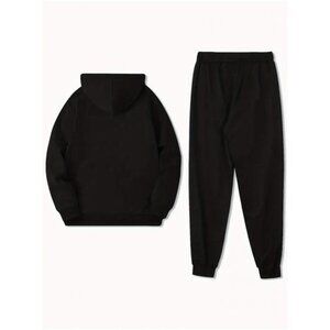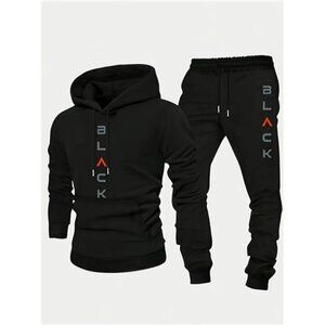 New with tags! Make a sleek statement with this modern men's black tracksuit, perfect for athleisure, street style, or casual comfort. This eye-catching two-piece set features a classic black hooded sweatshirt with a bold, vertical "BLACK" graphic in contrasting gray and red on the front, adding a unique and edgy touch. The hoodie includes a comfortable drawstring hood, a spacious kangaroo pocket, and ribbed cuffs and hem for a snug fit. The matching black jogger pants feature the same distinctive vertical "BLACK" graphic on the leg, an adjustable drawstring waist for a custom fit, and practical side pockets. Crafted from a soft, breathable fabric, this versatile set is ideal for gym workouts, urban outings, or relaxed everyday wear. Elevate your minimalist yet impactful sportswear collection with this must-have ensemble. (Typical measurements for size M: Chest 40-42", Waist 32-34", Inseam 29-31").