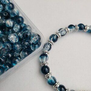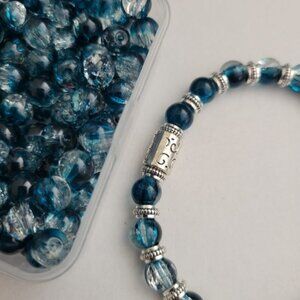 NWT Mens Blue And Silver Crackle Glass Bead Stretch Bracelet Exclusive S/M, L/XL