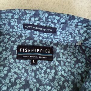 NWT Mens Button Up Fishhippie Rumfront Indigo Shirt L