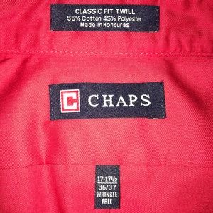 NWT. Chaps Classic Fit Twill wrinkle free red button down shirt. Size 17 - 17 1/2, 36/37. (!!!)