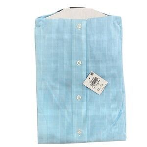 NWT Men’s Club Room Performance aqua check 100% cotton button down shirt 18.5