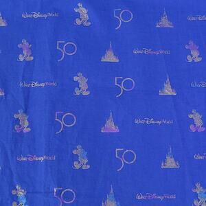 Metallic/iridescent allover print features Mickey Mouse, Cinderella Castle, Walt Disney World and ''50'' logos.