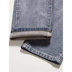 New with tags! Unleash your unique style with these statement-making men's distressed jeans. These light-wash denim pants are anything but ordinary, featuring a bold teddy bear graphic patch on the thigh, and a mix of "OK" and letter patches for a quirky, street-style vibe. The ripped and frayed details on the legs give them a perfectly worn-in look, while the unique plaid patchwork lining at the waist adds an unexpected touch of personality when cuffed. With a classic straight-leg cut and comfortable fit, these jeans are perfect for making a bold fashion statement. Pair them with a simple tee or a hoodie for a standout casual look. (Typical waist measurements for size 34: 34"–35").