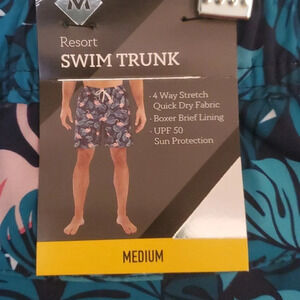 New With Tags - 2 mesh front zipper pockets, boxer brief underlining, 1 zipper back pocket. 4 way stretchy tie waist, quick dry fabric, and UPF 50 sun protection.