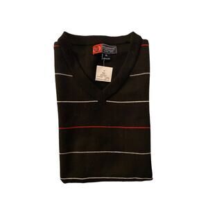 New With Tag Men's Golf Vest Cambridge Classics Size XL. 100% Polyester, machine washable. Black with thin white and red stripes’s. New With Tags
