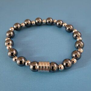 NWT Mens Hematite Luxury Stretch Bracelet Deep Gray, Silvery Accents S M L XL