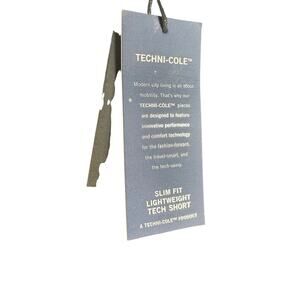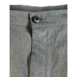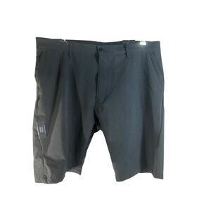 The product is a pair of NWT Men's Kenneth Cole Tech Shorts in a slim fit with a security pocket. These black heather shorts are made of polyester and spandex, offering a lightweight, stretchy, and moisture-wicking material for outdoor or casual wear. Designed with a flat front, zip closure, and a 9-inch inseam, these shorts also feature a hidden security pocket for added convenience. Machine washable and with a slim leg silhouette, these shorts are perfect for summer, fall, and spring seasons.