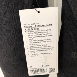 NWT Men's LULULEMON Sojourn Fleece-Lined Knit Jacket BLACK Size Medium M