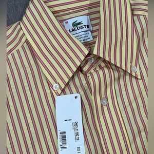 NWT Men’s Lacoste Size 38 Alligator Logo Button Front Striped Shirt