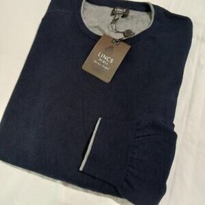 NWT Men’s Lincs XXL Navy Blue Long-Sleeved Crew Neck Cotton Cashmere Sweater