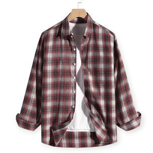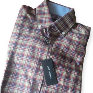 NWT Men's Long Sleeve Button Down Shirts Plaid Poplin Shirts