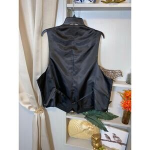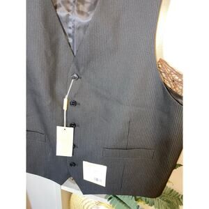 Item Description: NWT Men’s MK MICHAEL Michael Kors Black Pin Striped Adjustable Back Button Suit Vest Style KAROV No Size or Material Tag