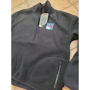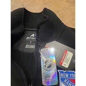 This NWT Men's Medium Antigua NHL New York Rangers 1/4 Zip Long Sleeve Pullover in black is an officially licensed jacket for fans of the National Hockey League. Made by Antigua, this pullover features the New York Rangers team logo and is designed for men in size M. Perfect for the regular season of hockey, this jacket is a stylish and comfortable with zippered pockets to secure your valuables. a perfect way to show support for the team.
