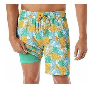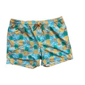 NWT Mens Members Mark 4-Way Stretch SPF 50 Resort Pineapple Swimming Trunks XXL