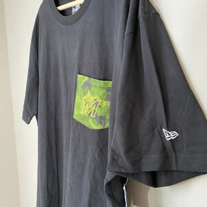 NWT Mens New Era MLB Miami Marlins Camo Pocket Black T-Shirt w Gold Logo Size XL