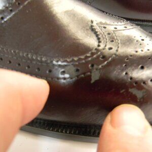 Condition Description: The right shoe has 5 places of material loss in the toe area. The tongues of the shoes are a bit off color.