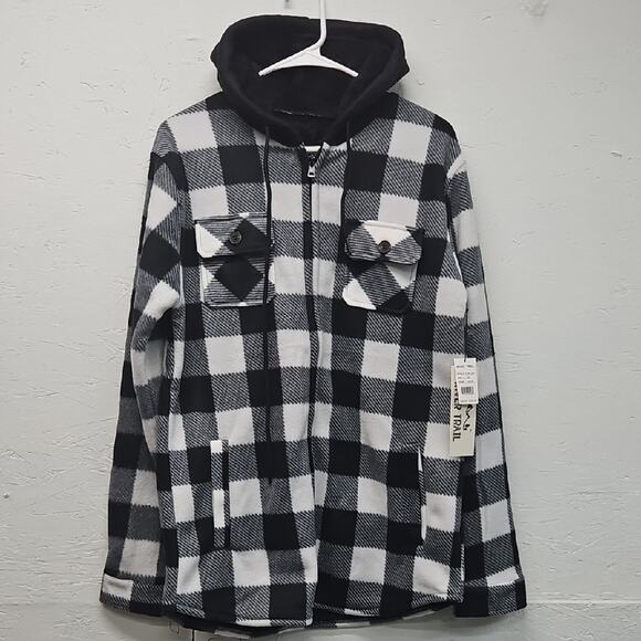 NWT Mens River Trail Black/White Plaid Fleece Lined Hoodie Jacket Medium MSRP$59