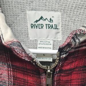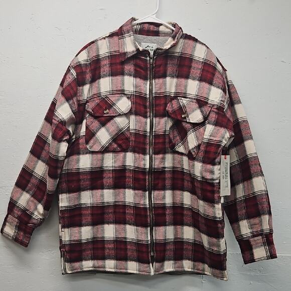 NWT Men's River Trail Zip Plaid Flannel Jacket in Red and White Large MSRP $85.