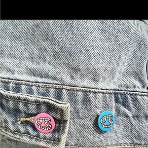 Tags- denim jacket, oversized jacket, oversized denim, streetwear, 90s, Y2K, neon, funky, colorful
