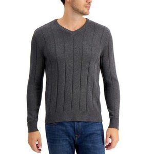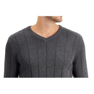 NWT Mens Size Large Club Room Grey Textured V-Neck Pure Cotton Sweater NEW