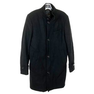NWT Mens Size Medium ZARA Black Wool Blend Full Zip Pea Coat