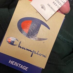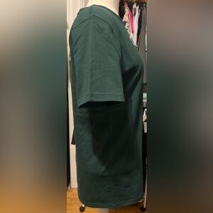 Classic Champion Heritage Heavyweight tee in dark pine green. Features iconic logo on chest that’s embroidered. Back text is also embroidered. Soft and comfortable fabric. Features text at back and logo on left sleeve. Originally $38