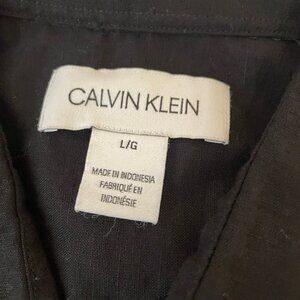 NWT Mens Sz L Calvin Klein Black Stretch Linen Blend Long Sleeve Button Down