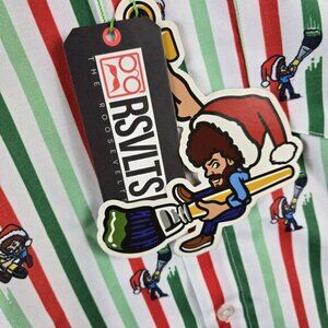 NWT Men's The Roosevelts RSVLTS Bob Ross Christmas Button Down Shirt Sz Large
