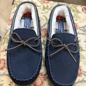 NWT Mens VINEYARD VINES Nautical Navy Blue Shearling Slippers