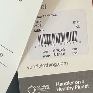 NWT Men's Vuori Black Strato Tech Tee, Sz XL