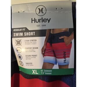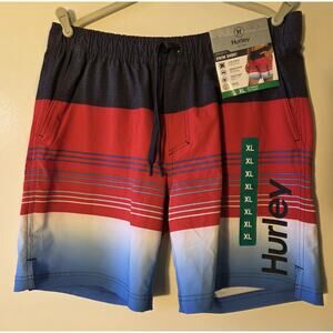 NWT Men's XL Hurley Regular Fit Stretch Swim Short 38-40 Waist Red White Blue