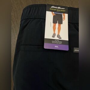 New with tags. MSRP is $70. Men’s XXL Eddie Bauer Ripstop Tech Shorts in black. UPF 50+, moisture wicking, adjustable belt. Elastic waistband and snap with zipper closure on front. Pockets have mesh lining. Smoke free home. No rips, stains or tears.