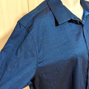 NWT Men's INC Pindot Colbot/Navy Blue Long Sleeve Dress Shirt