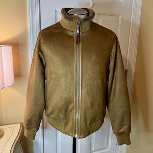 NWT Men’s Robert Graham Faux Vegan Suede Bomber Jacket Tan Size SMALL