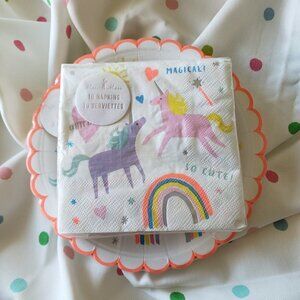 NWT - Meri Meri Unicorn Rainbow Paper Plates (8) and Paper Napkins (16)