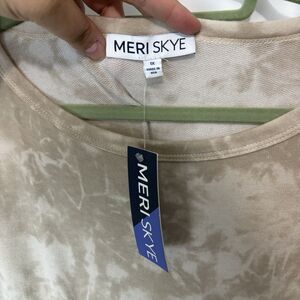 NWT Meri Skye Womens Plus 1X Long Sleeve Dress Beige Tan Tie Dye Comfy Cozy
