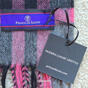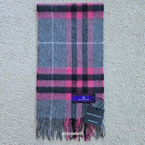 NWT Merino Wool Scarf Pink and Grey Plaid