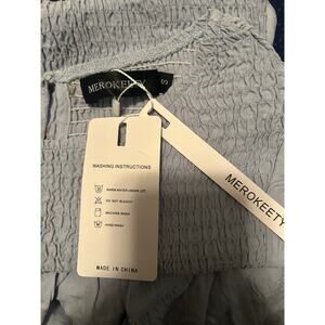 NWT Merokeety Light Blue Tiered Summer Dress Smocking Cap Sleeves Size Small