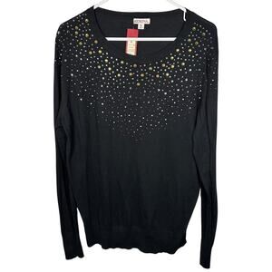 NWT Merona Rhinestone Embellished Round Neck Cotton Black Sweater Women's XL