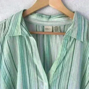 NWT Merona Women's Long Sleeve Button Up Multicolor Striped Cotton Top Size 22W