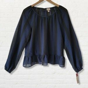 New with Tags Merona Blouse - Black and Blue Striped with ruffle waist