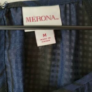NWT Merona Blouse Black and Blue Peasant Top Women's Size Medium
