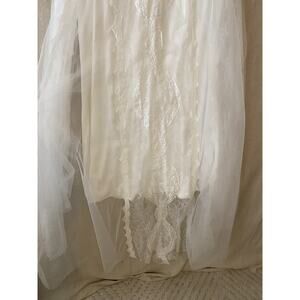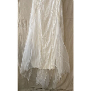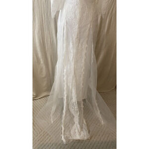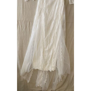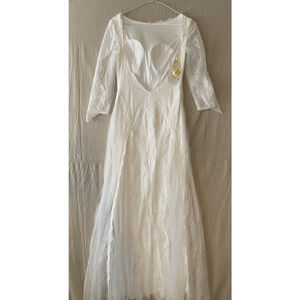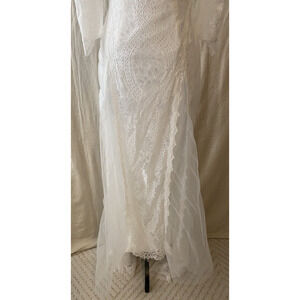 NWT Merry's Wedding Dress Size 4 Sheer Lace Silky Lining Flowing Bottom Train