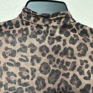 NWT Mesh Leopard Animal Print Mock Neck Bodysuit Fitted Top